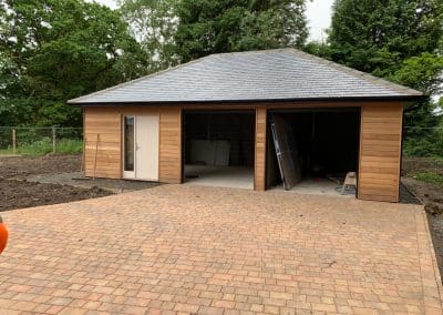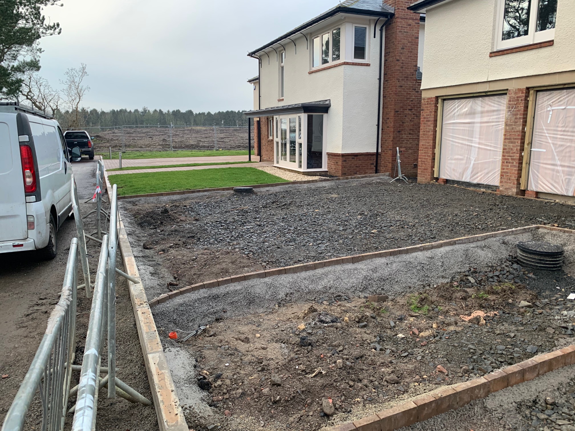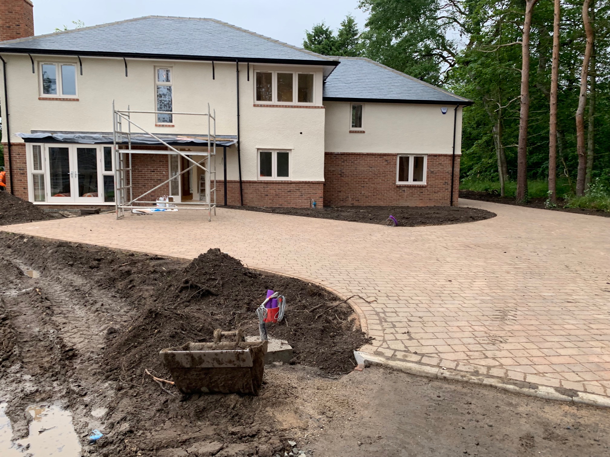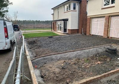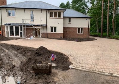 SRL were employed to carry out all foundations, floor slabs, drainage, services installations and external hard and soft landscaping.Given the nature of this site and the value of the dwellings, all external finishes had to be to the highest standards. In addition to the plot works, SRL also constructed the access road and mains drainage into the site